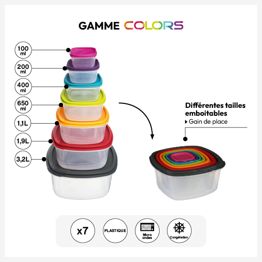 7 boîtes de conservation carrées, Plastique