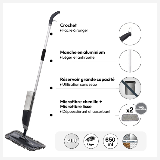 Balai avec réservoir et 2 recharges