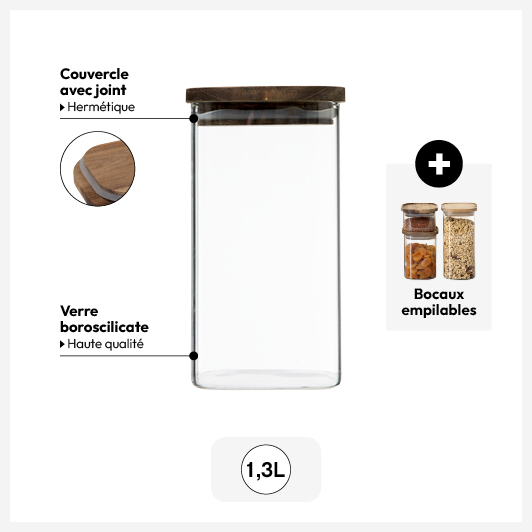 Bocal verre couvercle acacia 1,3L