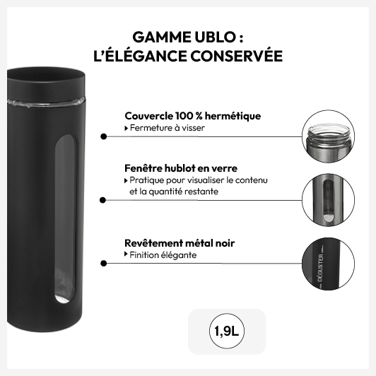 Bocal verre et métal 1,9L, Noir