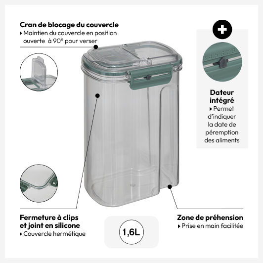 Boîte de conservation hermétique avec bec verseur 1,6L