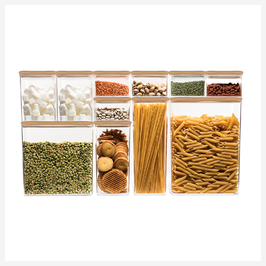 Boîtes de rangement alimentaire, à double visibilité et parfaitement empilable, pour un rangement optimal dans un placard, dans un tiroir ou même sur votre plan de travail.