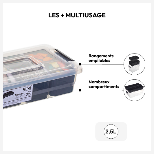 Boîte en plastique compartimentée 2,5L