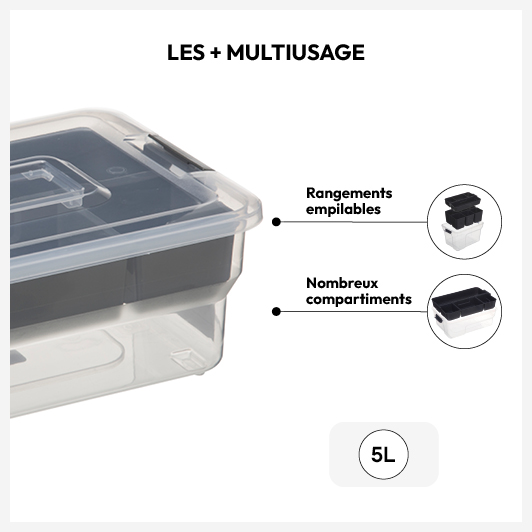 Boîte en plastique compartimentée 5L