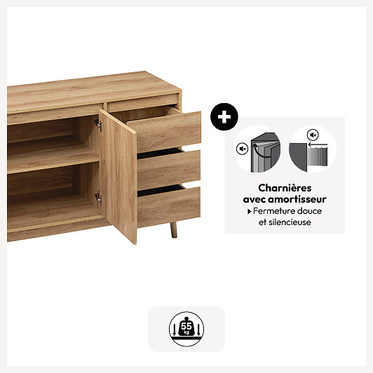 Buffet placard 3 tiroirs, Effet chêne naturel