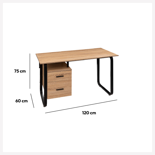 Bureau avec caisson - Effet bois, noir