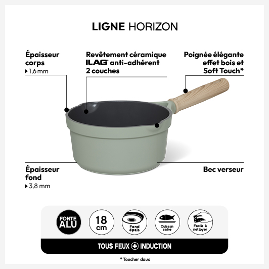Une gamme de poêles et casseroles alliant design raffiné et performances de cuisson. Conçue pour les passionnés de cuisine exigeants, cette collection est dotée d’un revêtement céramique ILAG, garantissant une cuisson saine, antiadhésive et sans substances nocives.