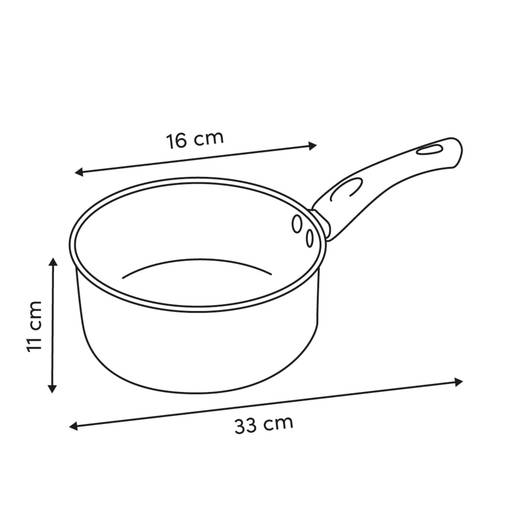 | Dimensions des éléments | Diamètre de la base : 13,7 cm Diamètre du corps : 16,3 cm Épaisseur du bord central : 0,5 cm Longueur de la poignée : 16 cm Épaisseur du fond : 2 cm |