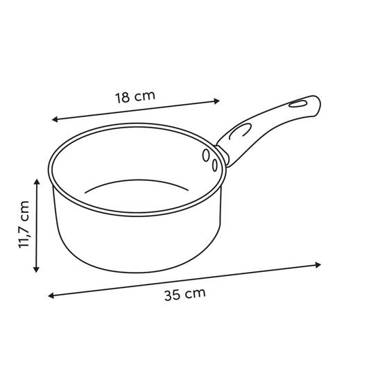 | Dimensions des éléments | Longueur de la poignée : 16 cm Épaisseur du fond : 2 cm Épaisseur du bord central : 0,5 cm Diamètre du corps : 18,4 cm Diamètre de la base : 15,7 cm |