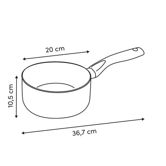 | Dimensions des éléments | Longueur de la poignée : 16,1 cm Épaisseur du fond : 2,5 cm Épaisseur du bord central : 2 cm Diamètre du corps : 20,3 cm Diamètre de la base : 15,8 cm |