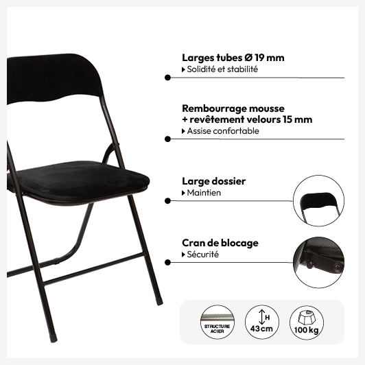 Chaise pliante en velours, Noir