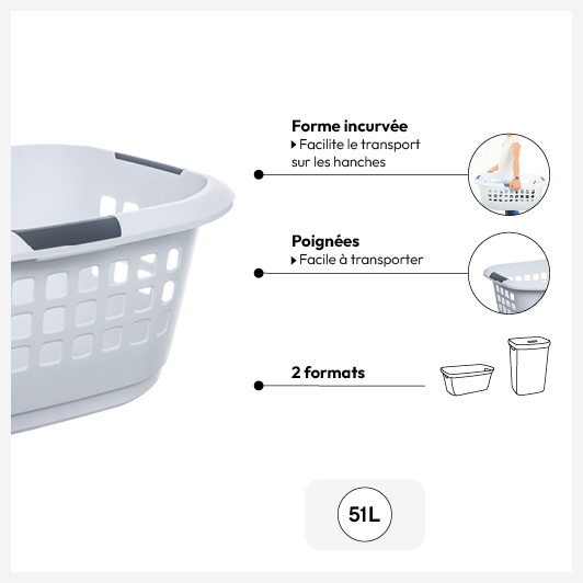 Corbeille à linge 51L, Blanc