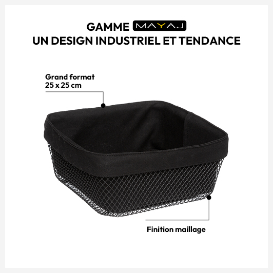 Corbeille à pain métal 24,5 cm, Noir