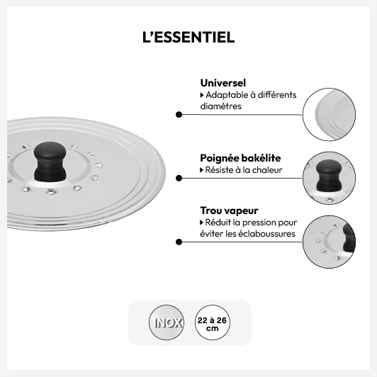Couvercle en inox universel, 22/24/26 cm