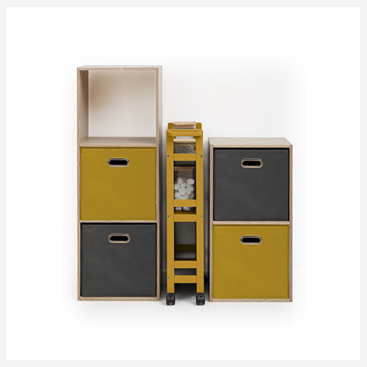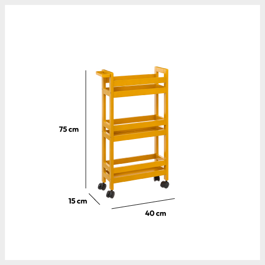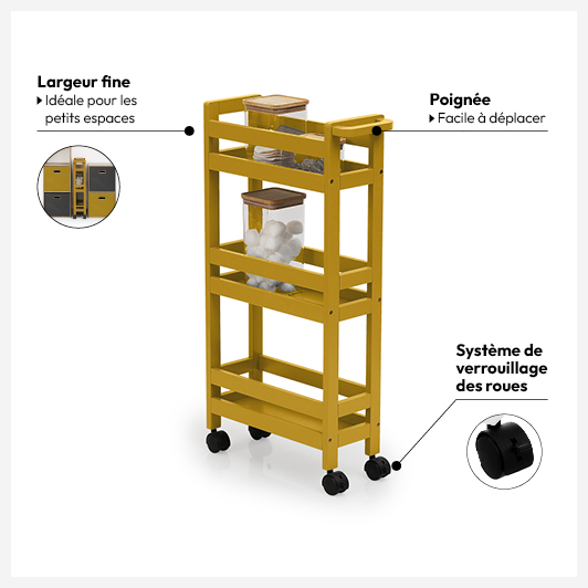 Desserte à roulettes 3 niveaux, Jaune moutarde