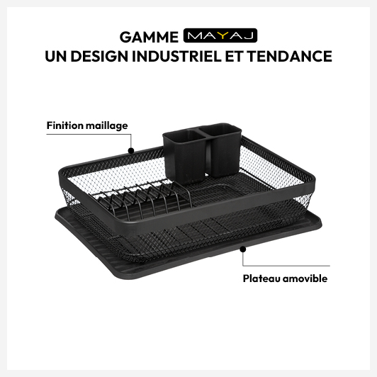Égouttoir métal avec plateau, Noir