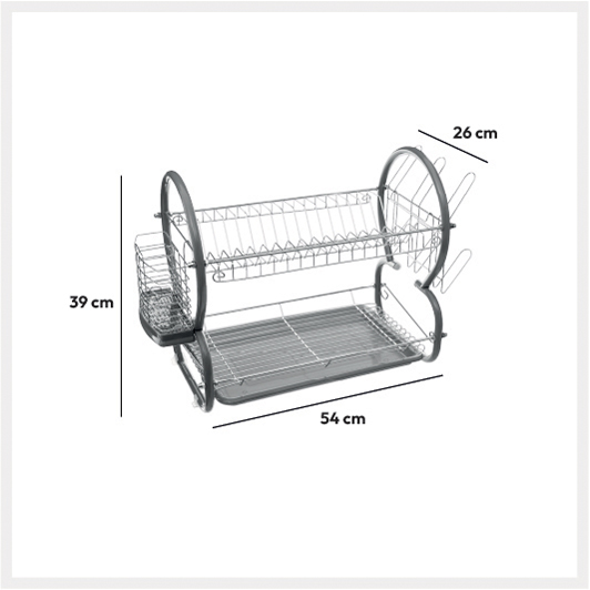 Égouttoir métal 2 niveaux avec plateau, Gris