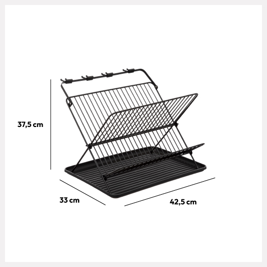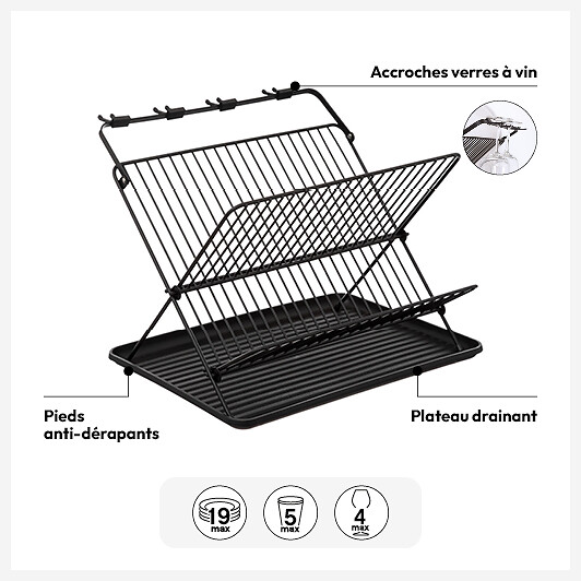 Égouttoir pliant 2 niveaux avec plateau, Noir