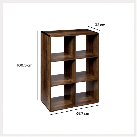Étagère 6 cases indus, Effet bois foncé