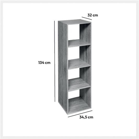 Étagère colonne 4 cases, Effet chêne gris