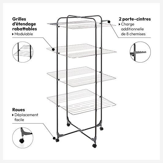 La gamme d'étendoirs spécialement conçus pour optimiser la place dans votre habitation, tout en offrant une grande capacité d'étendage de linge.