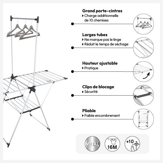 La gamme d'étendoirs spécialement conçus pour optimiser la place dans votre habitation, tout en offrant une grande capacité d'étendage de linge.