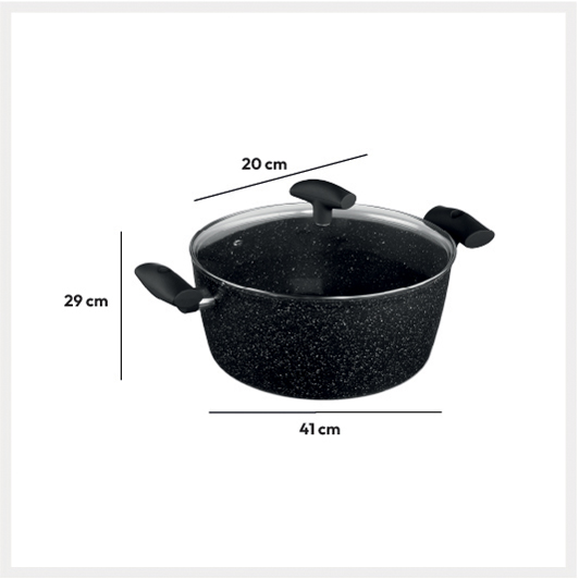 Caractère, pour une cuisine élégante et performante. Son revêtement antiadhésif effet pierre garantit des cuissons homogènes sans matière grasse.