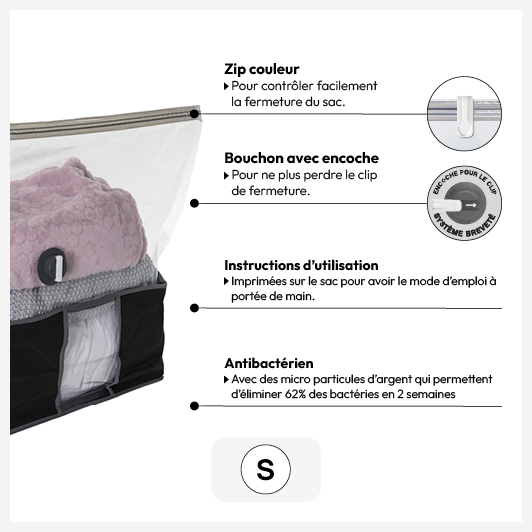 Une solution rapide et efficace pour réduire l'encombrement. Nos sacs de rangement sous-vide sont disponibles dans plusieurs formats.
