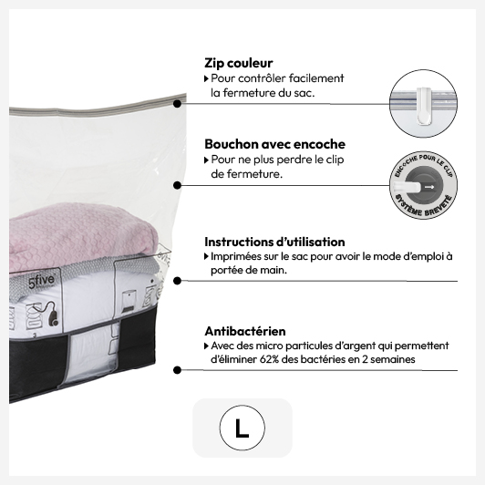 Une solution rapide et efficace pour réduire l'encombrement. Nos sacs de rangement sous-vide sont disponibles dans plusieurs formats.