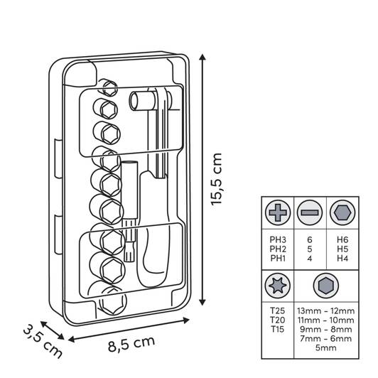 | Dimensions du produit | L.15,5 x l.8,5 x H.3,5 cm |