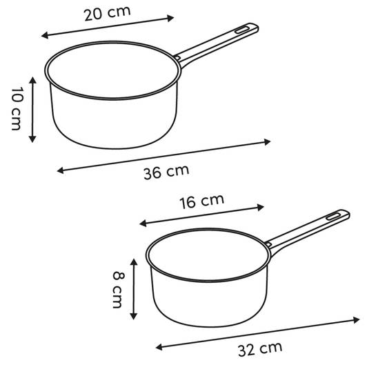 | Dimensions des éléments | Diamètre de la base de la grande casserole : 15 cm Diamètre de la base de la petite casserole : 19 cm Diamètre du corps : 20 cm Longueur de la poignée : 16 cm Épaisseur du fond de la petite casserole : 2,5 cm Épaisseur du bord central de la grande casserole : 0,5 cm Épaisseur du fond de la grande casserole : 2,5 cm Épaisseur du bord central de la petite casserole : 0,5 cm |