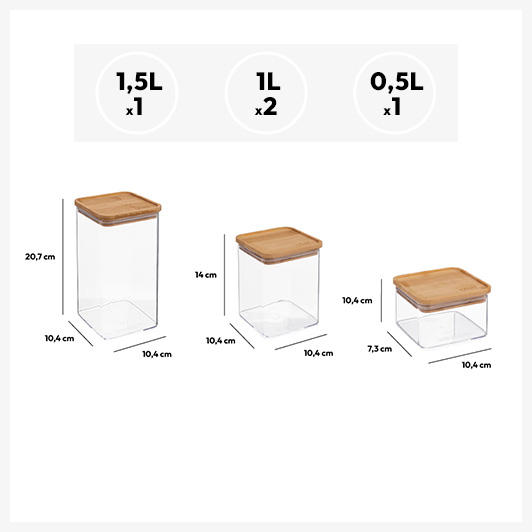 Boîte de conservation carrée couvercle bambou, 1,5L