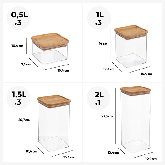 Boîte de conservation carrée couvercle bambou, 2L