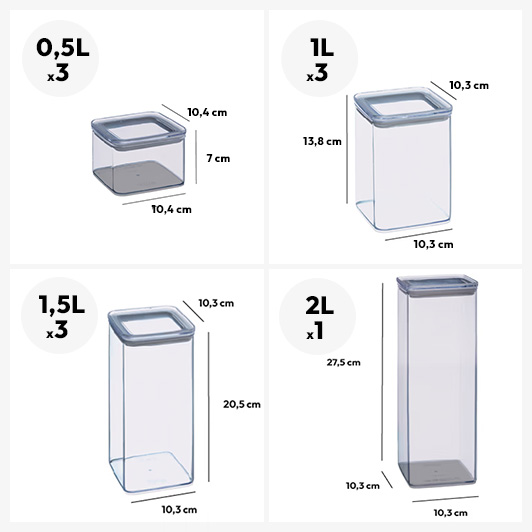 Lot de 8 bocaux de conservation hermétiques 0,5L à 2L