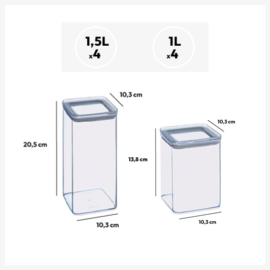 Lot de 8 bocaux de conservation hermétiques 1L et 1,5L