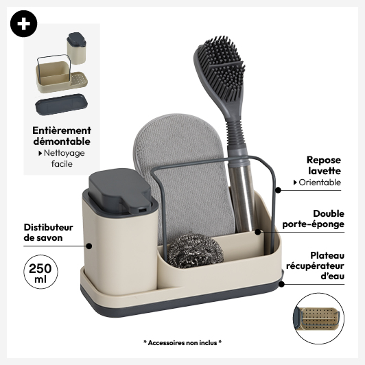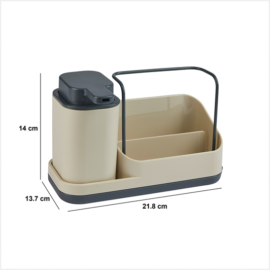 Organiseur évier avec distributeur 300ml, Beige