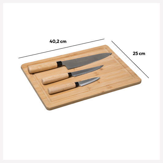 Belle planche et beau couteaux. Super pour le prix. En revanche je ne pense pas que je mettrai les couteaux au lave vaisselle. Je pense que les manches s'abimeront.