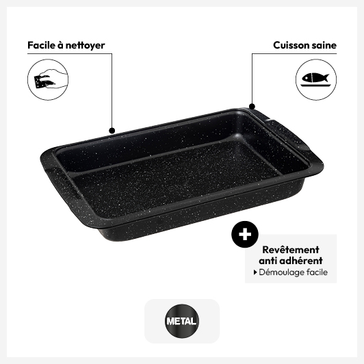 Caractère, pour une cuisine élégante et performante. Son revêtement antiadhésif effet pierre garantit des cuissons homogènes sans matière grasse.