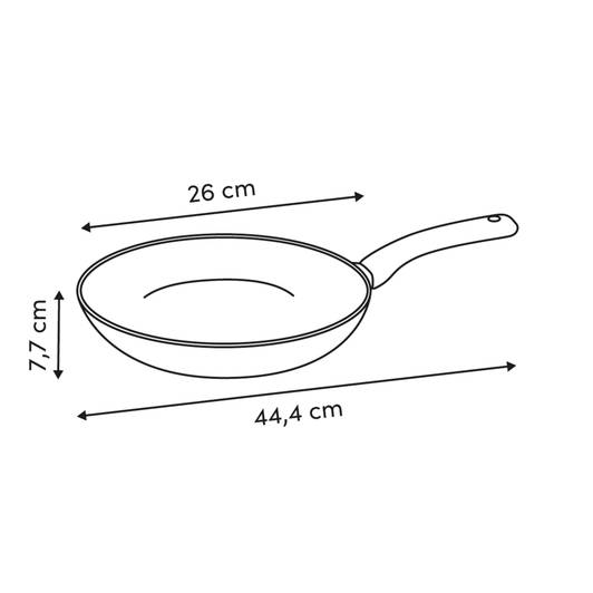 | Dimensions des éléments | Longueur de la poignée : 17,8 cm Épaisseur du fond : 2,5 cm Épaisseur du bord central : 2,0 cm Diamètre du corps : 26,4 cm Diamètre de la base : 18,9 cm |