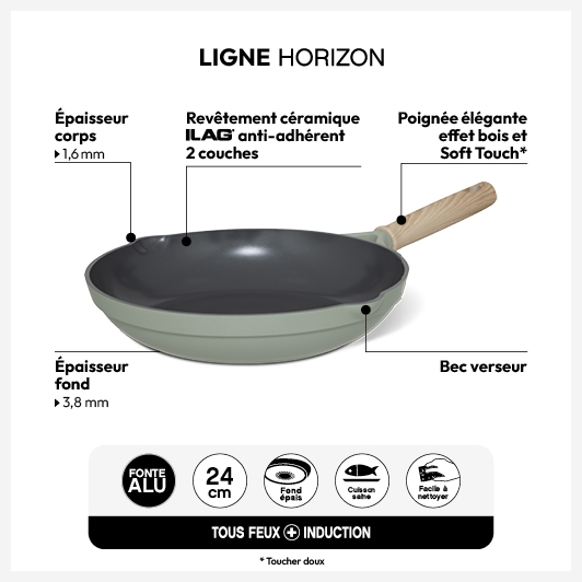 Une gamme de poêles et casseroles alliant design raffiné et performances de cuisson. Conçue pour les passionnés de cuisine exigeants, cette collection est dotée d’un revêtement céramique ILAG, garantissant une cuisson saine, antiadhésive et sans substances nocives.