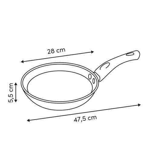 | Dimensions des éléments | Longueur de la poignée : 18,5 cm Épaisseur du fond : 2,0 cm Épaisseur du bord central : 0,5 cm Diamètre du corps : 28,0 cm Diamètre de la base : 19,5 cm |