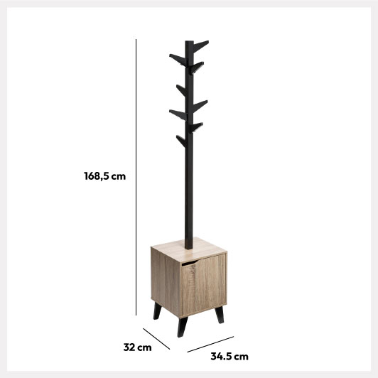 Porte-manteaux effet chêne naturel, Noir