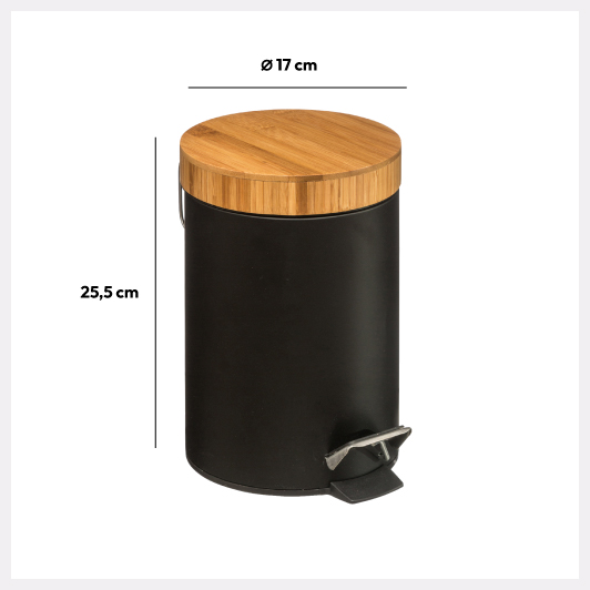 Poubelle à couvercle bambou 3L, Noir