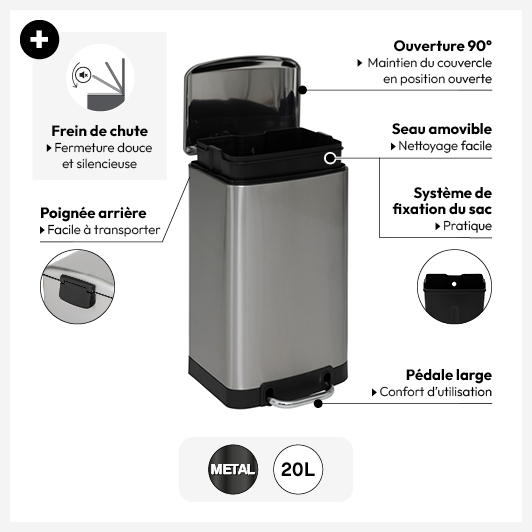 Poubelle métal 20L, Inox