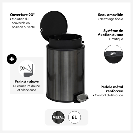 La poubelle Delta trouvera sa place chez vous et durera dans le temps, grâce à sa pédale en métal renforcée et son filtre à charbon, pour éviter les mauvaises odeurs.