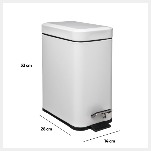 Poubelle rect soft close inox 5l, Blanc