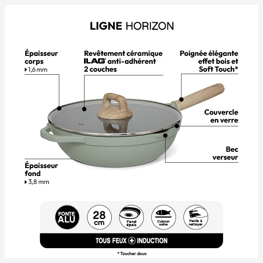Une gamme de poêles et casseroles alliant design raffiné et performances de cuisson. Conçue pour les passionnés de cuisine exigeants, cette collection est dotée d’un revêtement céramique ILAG, garantissant une cuisson saine, antiadhésive et sans substances nocives.