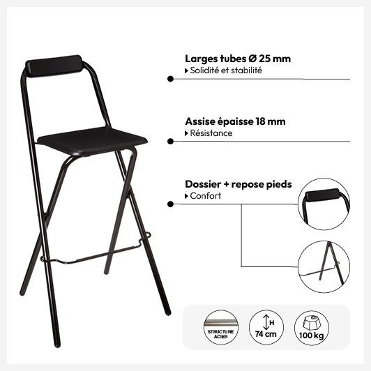 Chaise de bar pliante, Noir