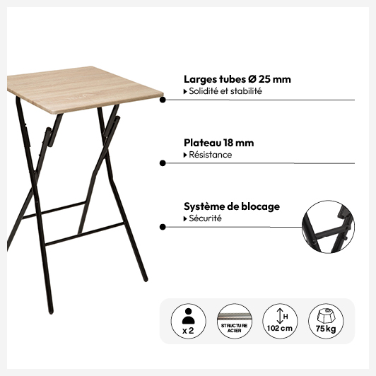 Table de bar pliante 2 places, Effet bois
