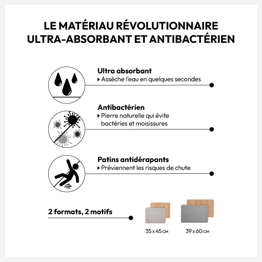 Tapis diatomite 39x60cm, Effet bambou